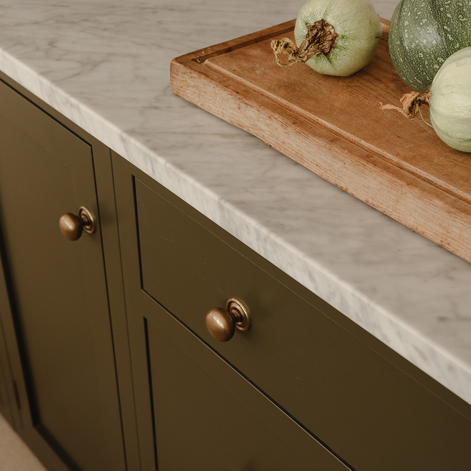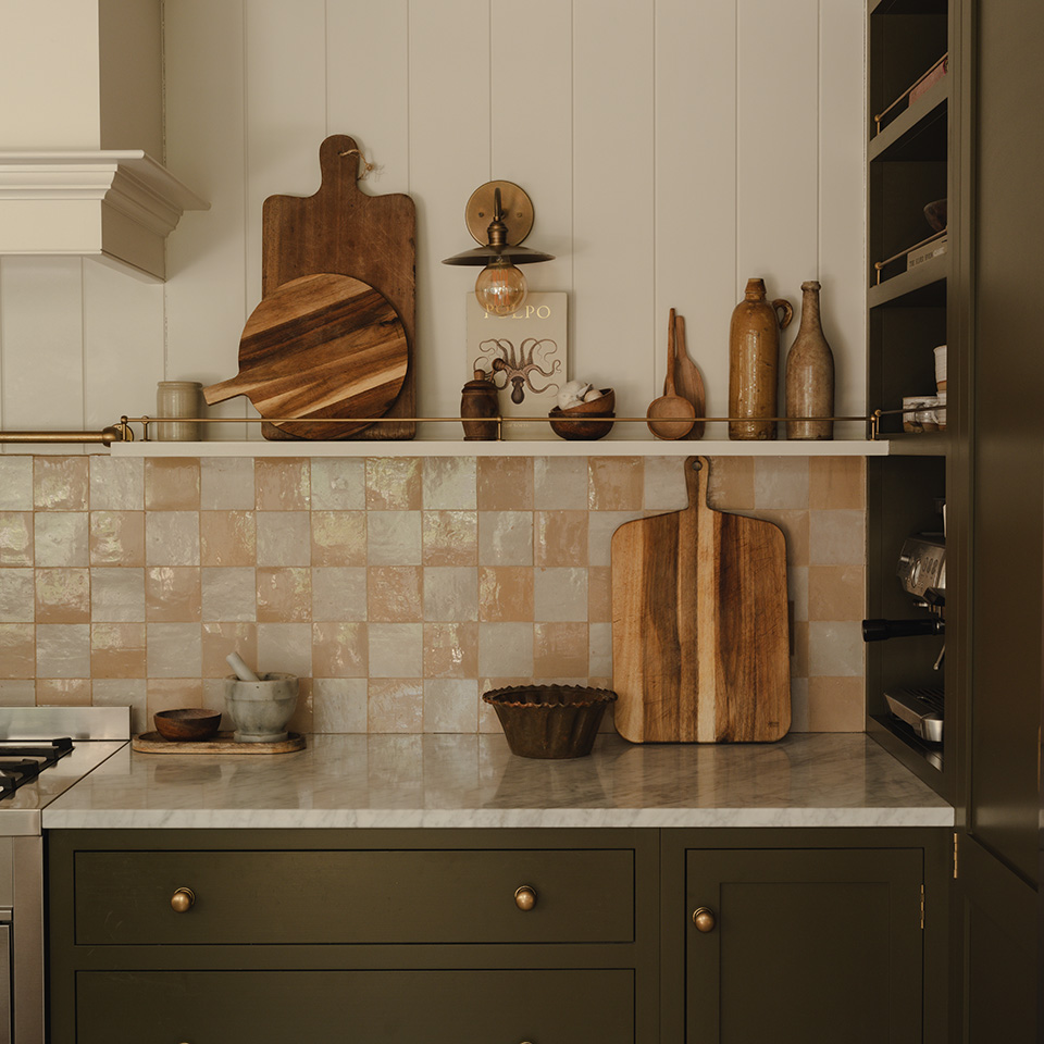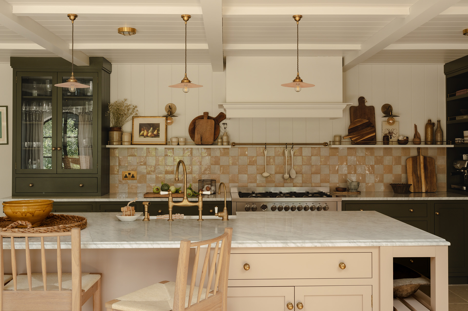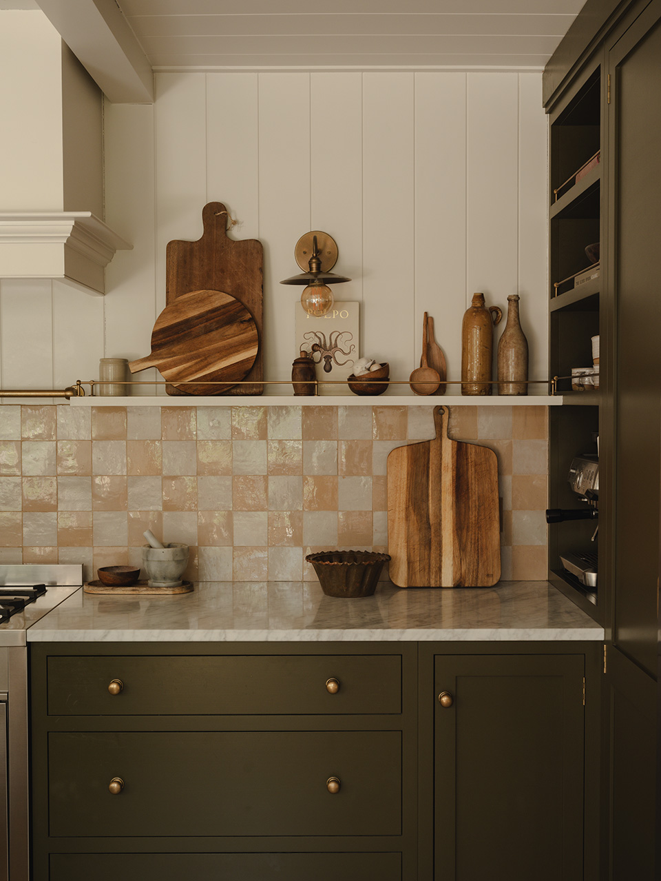 Bringing kitchens to life, designed as a natural extension of, rather than separate from, the rest of the home. Our characterful project in collaboration with House Nine Design exemplifies the evolution of this hardworking room into a stylish, versatile space for everyday living and entertaining. With a coffered ceiling adding an extra layer of decorative detail, the overall layout is open and airy thanks to a primarily low-level cabinet run. Cupboards and deep drawers with pullout components provide ample storage here and discretely located on the island, freeing up the wall for display shelves and splashy tiles. Our hand-painted Shaker cabinetry brings enduring classic style as well as a cool quirky touch in its contrasting colour palette.
